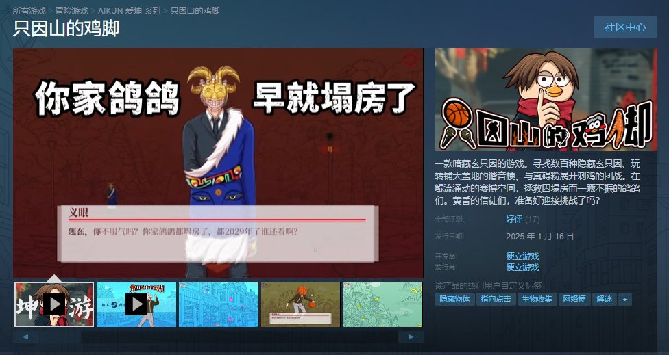 六年多的时间里,已经有无数网友相继出视频来证明“坤梗才是最屌的”,而这股势力也慢慢延续到了游戏区,这些年大家也没少见那些打着坤坤旗号的各种整活游戏吧。