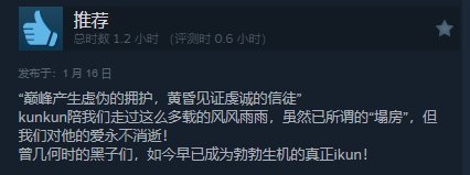 体验过后才知道,100%好评不是没有理由的,同时也不得不钦佩作者才是鸽鸽最真爱的黑子啊。对我来说从开始游戏到全成就,总共也就用了不到两小时的时间,甚至还能退款(当然是不会退的啦),谁能想到一个首发打折不到十块钱的游戏,不仅没有粗制滥造的画面,还具备了三种不同的玩法,这么好的一个能让带给人欢乐的坤坤游戏,你为什么不也来试一试呢。