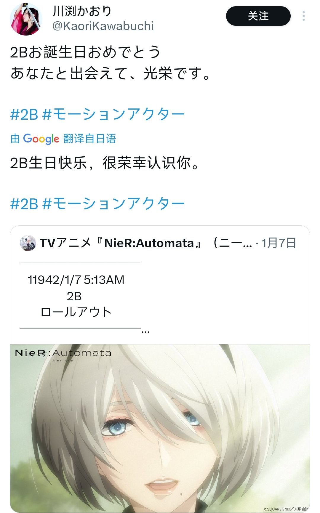 说完蒂法,咱们再来一个《机械纪元》中2B与A2的动捕演员的介绍。给机械纪元女主做动捕的演员名为:川渕(yuan)香织。