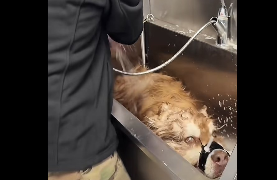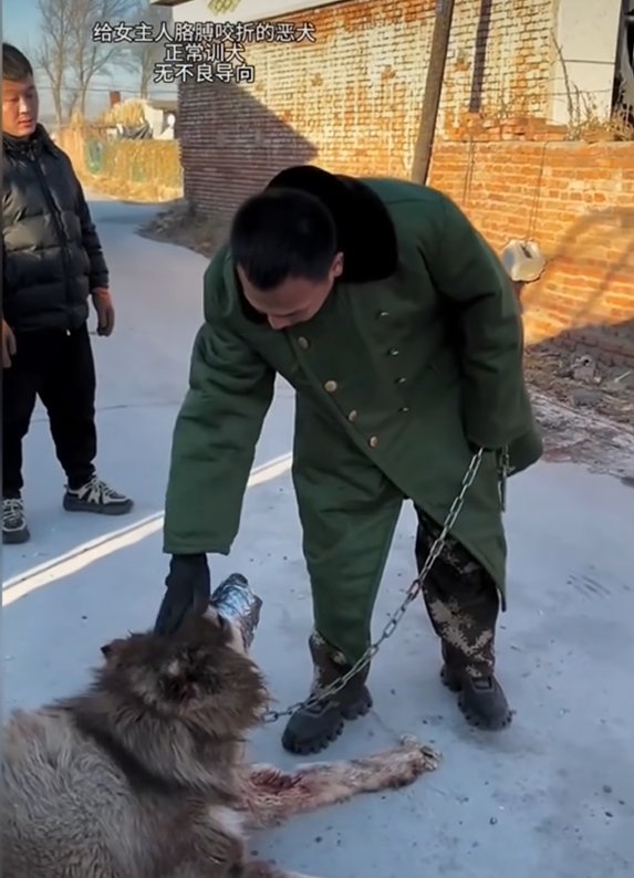 但是因为艾特确实能给潘宏带来许多流量,所以潘宏众多网友的呼吁下,就打算给艾特洗个澡。但是咱们上面提到过,艾特实际上并没有被驯服,只是被潘宏给打服了,基因里的藏獒野性改不了,虽然平时它不会主动攻击潘宏,但在洗澡时可就不一定了,所以潘宏为了保险起见就给艾特的嘴绑上了(并且绑的非常紧)