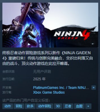 除此之外,系列新作《忍者龙剑传4》也正式公开,本作由忍者组和白金工作室合作开发,游戏将在今年秋季发布,同样将登陆主机和PC平台,首发加入XGP。好家伙,前有真三无双起源,后有两部忍龙的新消息,光荣今年也是好起来了!
