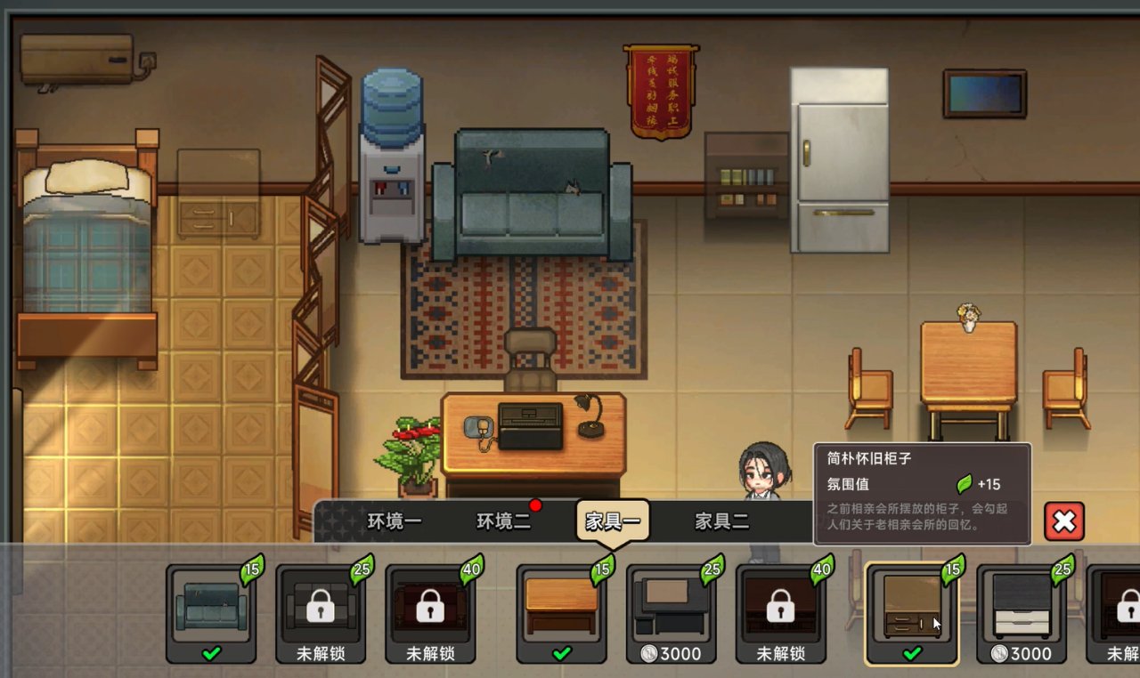 比如游戏进行至前中期,完成“罗天成”任务后,他就会帮你自动打扫“相亲失败”所留下来的垃圾,而且还会解锁装饰功能——但这些功能我认为意义不大,因为《中国式相亲》作为一款模拟经营类游戏,我觉得是不合格的。