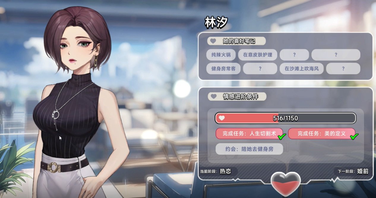 除了上图的标准服装外,随着每条女主线的推进,可以解锁新服饰。首周目我主要推进的是“林汐线”,仅这条线而言,共有五套女主服装立绘,其他女主线不出意外应该也是如此。