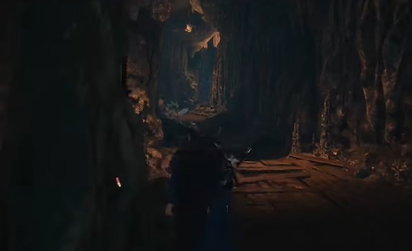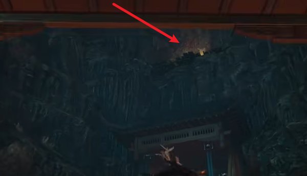 3、利用旁边的石头攀爬,前往箭头处的洞穴。