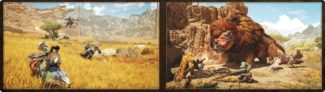 此任务以讨伐率领群体的辟兽首领为目标。可骑乘鹭鹰龙探索广阔的原野,也能切换2种武器进行狩猎,亲自体验全新的狩猎动作吧。