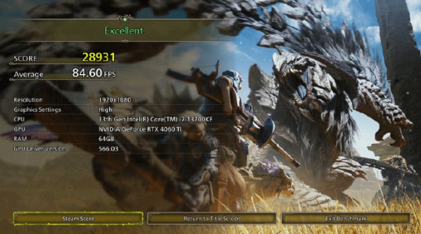 除此之外,官方下调了游戏的PC配置需求,现在的最低要求变成了GTX 1660(6GB显存)或AMD RX 5500 XT(8GB显存)。Steam平台已经开放了《怪物猎人:荒野》的性能测试工具,大伙可以免费下载,检测自己的设备是否满足游戏的运行需求。