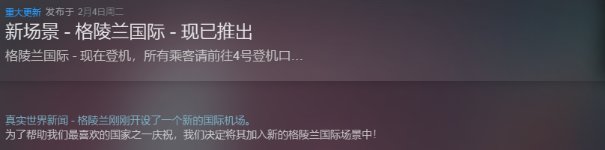 然而就在昨天,这款十多年前发售的游戏进行了一波重大更新,直接把格陵兰国际机场加入了游戏。好家伙,开发者对格陵兰确实是真爱了!