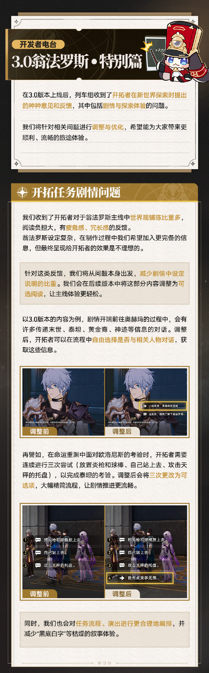 崩坏星穹铁道官方表示将在接下来的更新中对玩家们比较诟病的问题进行优化,相信大家都想知道即将更新优化哪些内容吧,下面就快跟随小编一起来看看崩坏星穹铁道3.0更新优化内容。