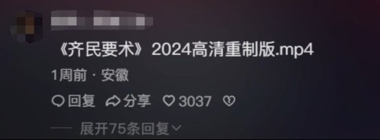 由于该账号创作的大多都是介绍农民生活相关的视频,与同样记录农业生产技术和经验的《齐民要术》有异曲同工之妙,着实是给了很多像我一样五谷不分的网友一点小小的震撼,所以网友们便将其附名为“赛博齐民要术”或是“齐民要术电子版”。