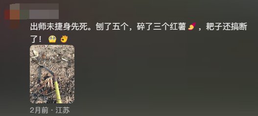 看着好像没什么难度对吧?以前小时候去红薯地的时候,奶奶也是这样教我的,可当我实际上手的时候不是没找准红薯位置,就是一耙给红薯干两半了,有条件体验的网友也给出了真实的反馈,总结下来就是干农活要的不仅仅是体力,更重要的是要动脑子。