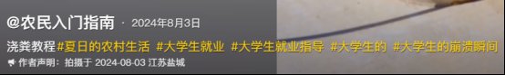 我也不知道为什么会被这个只有18秒的短视频硬控,回过神来已经视频已经循环播放好几遍了,而且最搞的是这条视频下面都是什么#大学生就业,#大学生就业指导之类的tag,怎么个事,这难道就是给“失业回家种地”的人提前留的后路吗?(绷)