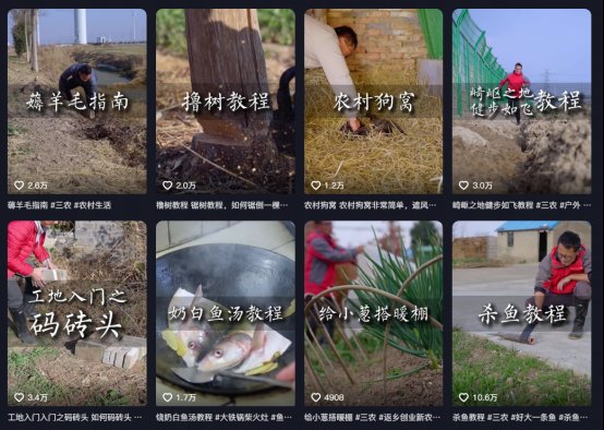 有一点不得不说这个账号名起的是真好,农民入门指南,我的第一反应是这玩意也有教程?带着这个好奇心我点进了作者的主页面,好家伙,这教的东西可真全,种地,洗菜,爬树,劈柴,做饭,修东西,分辨农作物等一系列生活小常识都有涉猎。
