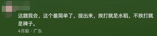 所谓稗子就是一种长得很像水稻的杂草,如不清理就会抢夺水稻的养分,这要是叫一个不知道的人去除草,可能一趟下来稗子没除几个,水稻倒是全给薅掉了。