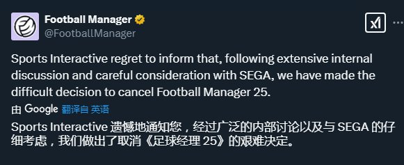 什么!年货游戏竟然“断货”了!Sports Interactive在今天宣布,《足球经理25》已经取消开发,所有预购游戏的玩家都会自动获得退款。官方表示,在经历了两次延期后,本作还是没能达到预期的质量目标,不得已才做出了这个“艰难的决定”,团队会把全部精力集中在下一款游戏上。然而,早就有消息爆料,称Sports Interactive只关注球员数据库的更新,几乎没有技术累积。这回《足球经理25》想换新引擎,结果发现它和球员数据库根本没法兼容!这不就相当于新马达和车架子对不上嘛!