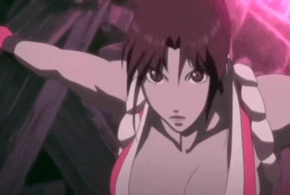 可以看到动画中火舞姐姐的人设风格与游戏完全不同,完全是个青春洋溢的美少女,应该叫火舞妹妹才对!不过我个人感觉动画形象实际上是当时最符合不知火舞人设的,因为按照设定当时她才19岁,而游戏立绘给人一种快30的感觉。经过93年在电视荧幕动画的初登场后,再次出现在动画中就来到了2005年由IG制作的《拳皇:格斗之王》,而这时期火舞姐姐的形象也已经无限接近于游戏立绘。