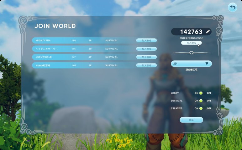 加主机:多人游戏——加入游戏——选择服务器区域——找到主机加入