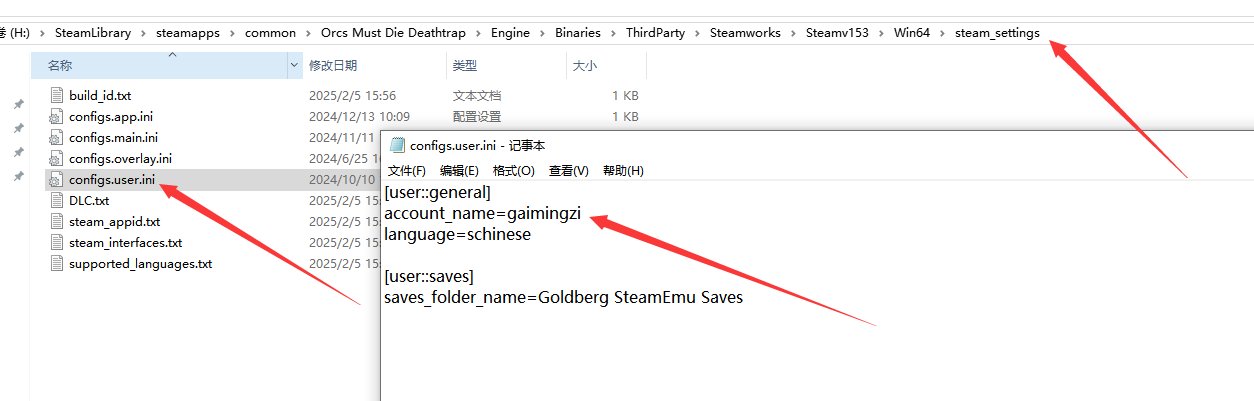 兽人必须死!死亡陷阱改名字教程:记事本方式打开\Engine\Binaries\ThirdParty\Steamworks\Steamv153\Win64\steam_settings\configs.user.ini,找到account_name=gaimignzi,把gaimignzi改成自己想要的名字。