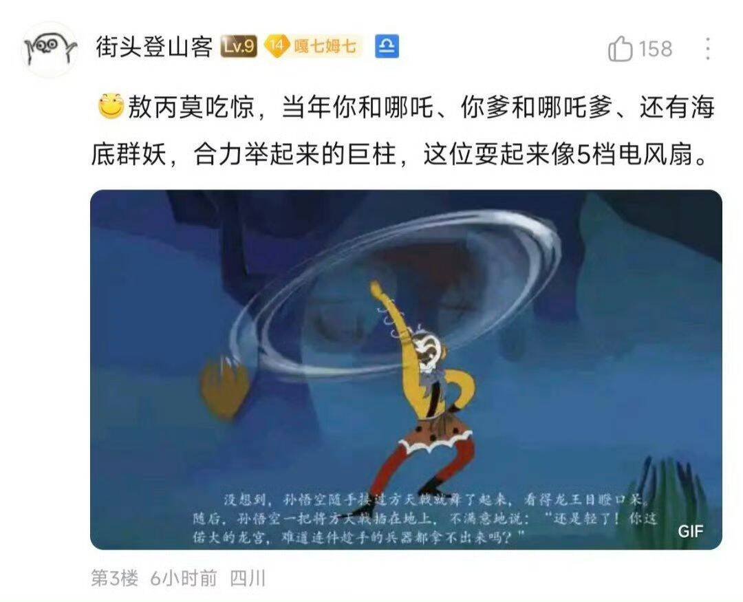 这里还可以顺便解释下孙大圣的战力到底有多逆天,就这么说吧,电影里那根镇压百万海妖的柱子,就是定海神针金箍棒,东海龙族+百万海妖抬起来都那么费劲,但咱们猴哥直接舞起来跟转电风扇似的。