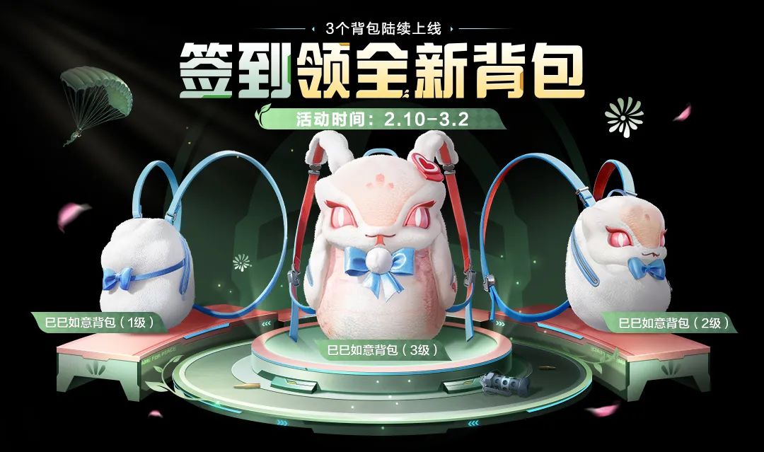 2月10日-3月2日,每周累计签到2天,共签到6天,可领取服饰币×6、物资币×3、能源电池×2以及全套巳巳如意背包。