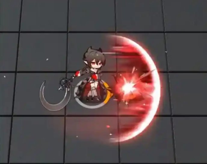二技能:技能开启后,停止攻击,在自身及1名其他友方地面单位处召唤血镰,对周围所有敌人进行切割,每隔一段时间造成一定物理伤害。