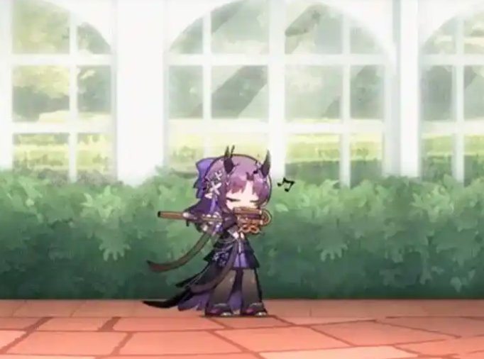 Q版小人这一块的表现也不错,不论是日常的站姿,还是吹笛子的动作设计上都很优雅,攻击附带的特效很明显,这种粉色的配色和设计搭配带来的游戏体验很不错。