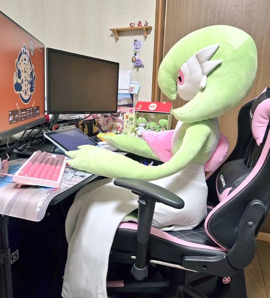 更有老哥,早就给沙奈朵准备了全套电竞设备,你看这粉嫩嫩的电竞椅和键盘,一看就不是给自己用的。