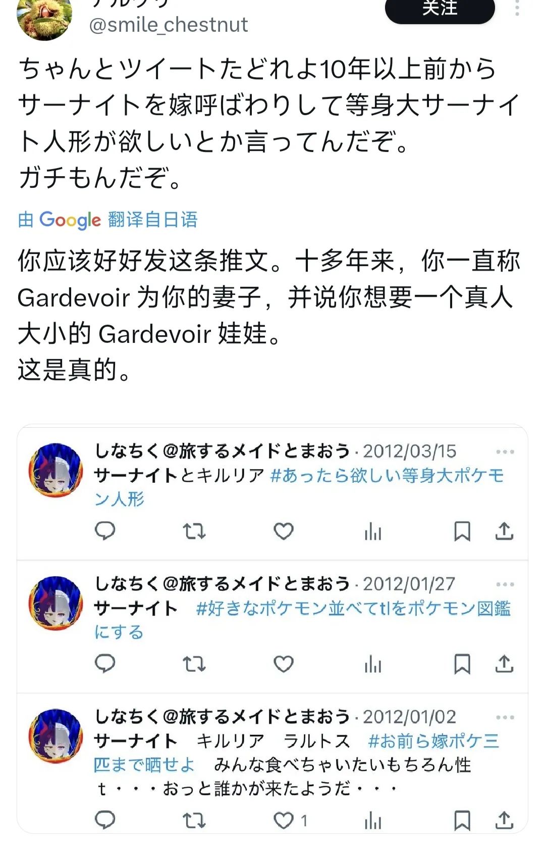 随后这推主老哥被别的玩家扒出,原来十几年前,他就曾经在推特上表示:“好像让沙奈朵做我老婆啊,如果能有个等身人偶的话......”