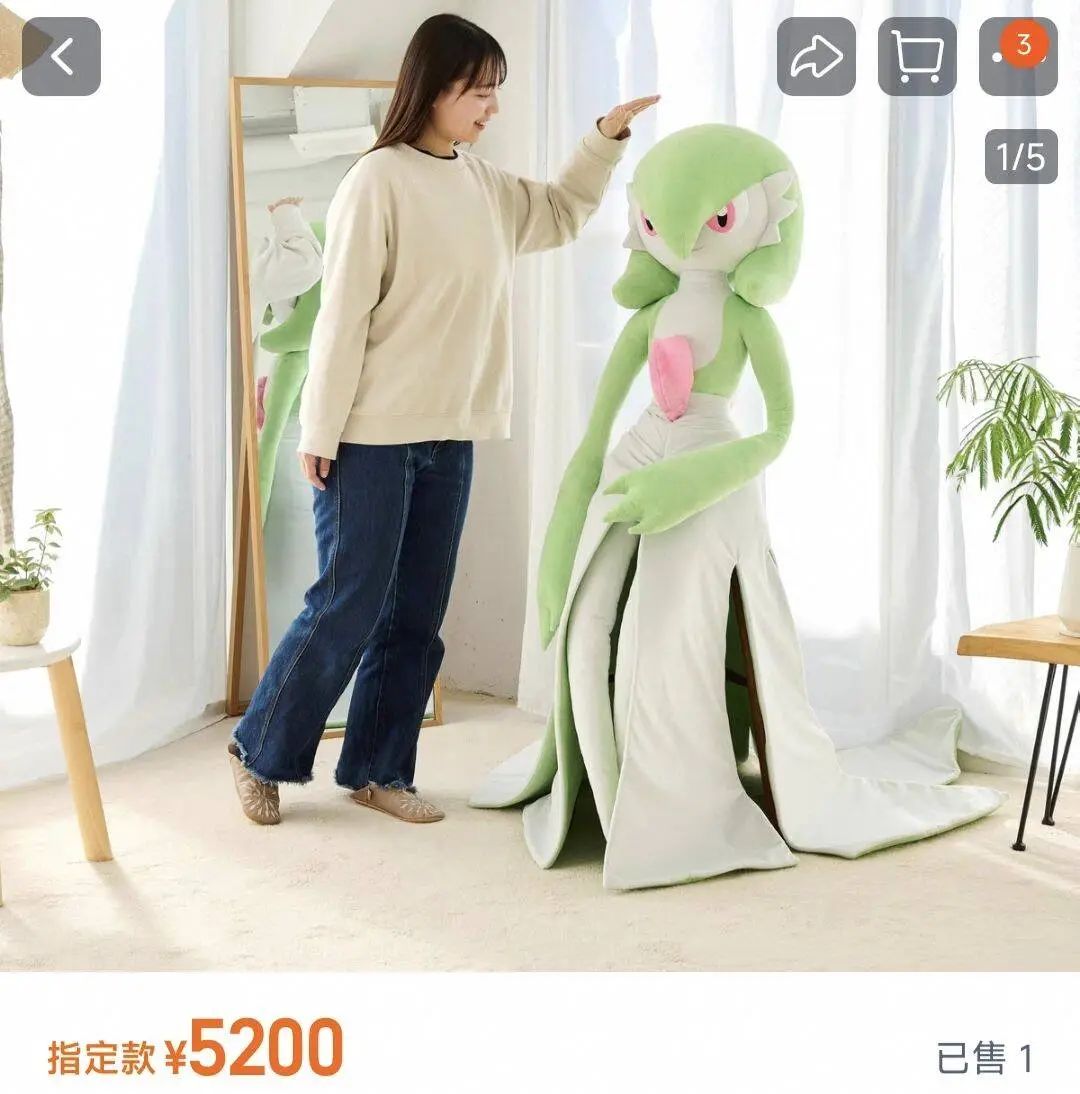 其次就是再次证明了沙奈朵人气的含金量,这下都不用拿本子举例了,连玩偶摆几个姿势都能获得如此高的关注度,这是多少IP角色想都不敢想的事。只不过经历这波热度后,沙奈朵等身人偶估计更难抢了,我去某平台看了眼价格已经涨到了5200,而且还是120天内发货。