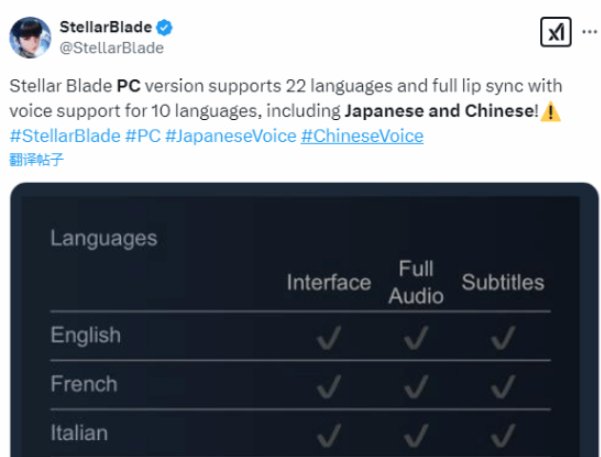让我们说中文!在今天举行的索尼发布会上,SHIFT UP确认《剑星》PC版将在6月推出,Steam商店页面现已开启。游戏会提供22种语言,不仅支持中文配音,还有完全的口型同步!
