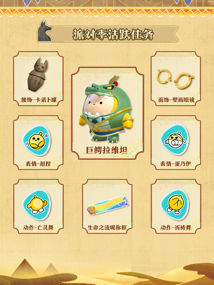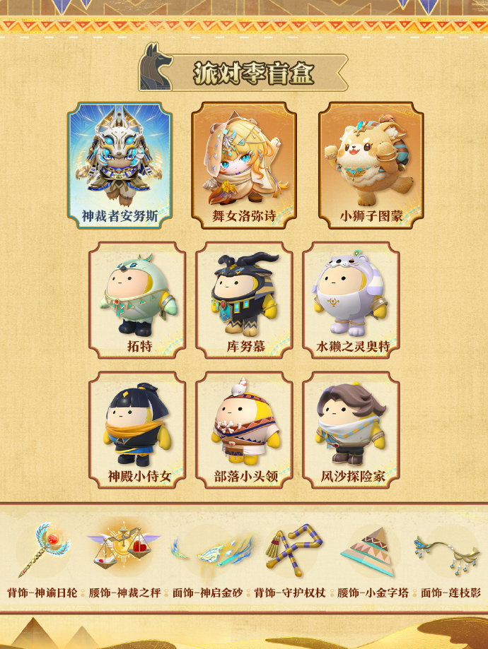 蛋仔派对将在2月21日上线S22赛季——金字塔传奇,除了神裁者安努斯舞女洛弥诗小狮子图蒙之外还有哪些皮肤呢?下面快跟随多特小编一起来看看蛋仔派对S22赛季皮肤吧。