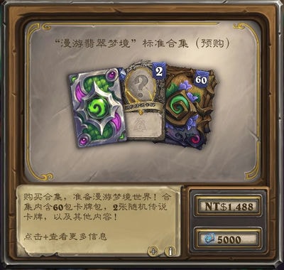 标准合集含构筑模式60翡翠包,2张随机翡翠普橙,新卡背“伊瑟拉”,售价3280奥术宝珠(国服)/5000符文石(外服)。