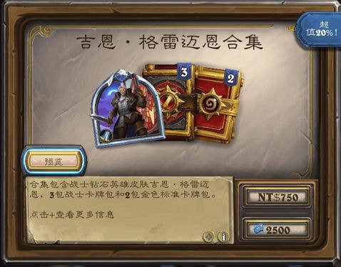 含构筑模式(钻石级)战士皮肤“吉恩·格雷迈恩”,3战士包和2标准金包,售价1580奥术宝珠(国服)/2500符文石(外服)。