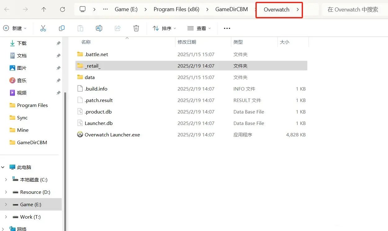 2、退回到上一级目录,剪切整个Overwatch文件夹,然后粘贴到其他位置(如另一个磁盘)。