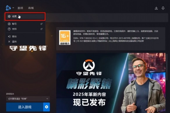 1、找到守望先锋的安装目录,可以通过战网客户端 → 齿轮图标 → 在资源管理器中显示 来定位文件夹。
