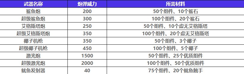 3、椰子机枪 & 鱿鱼发射器 - 适合特殊战斗场景,但非必需。