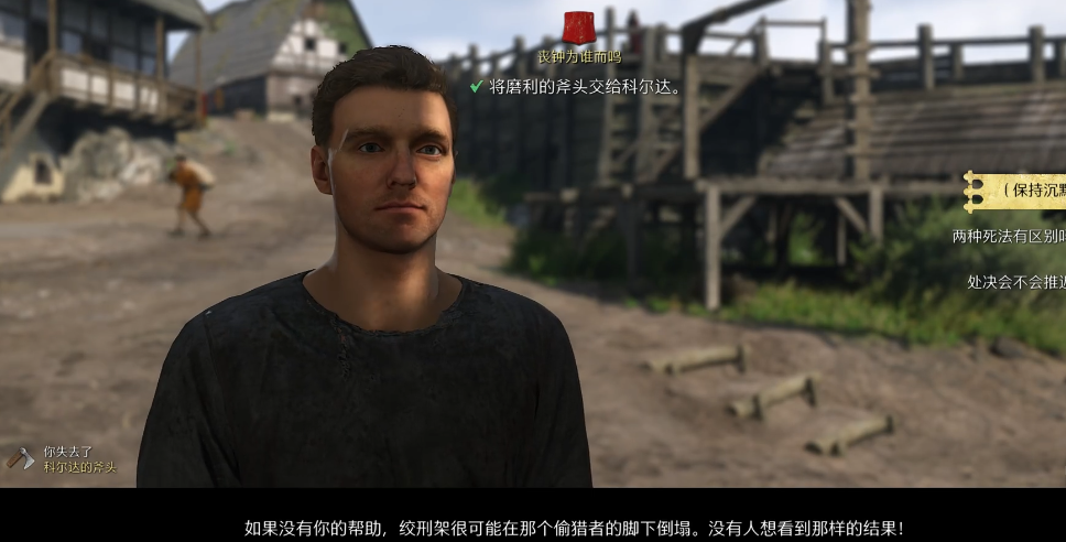 1、在绞刑架周围,你可以找到一名工匠,他会要求你帮忙磨斧头。