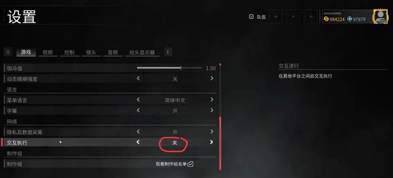 2、在【游戏选项】中,找到“交互执行”并关闭