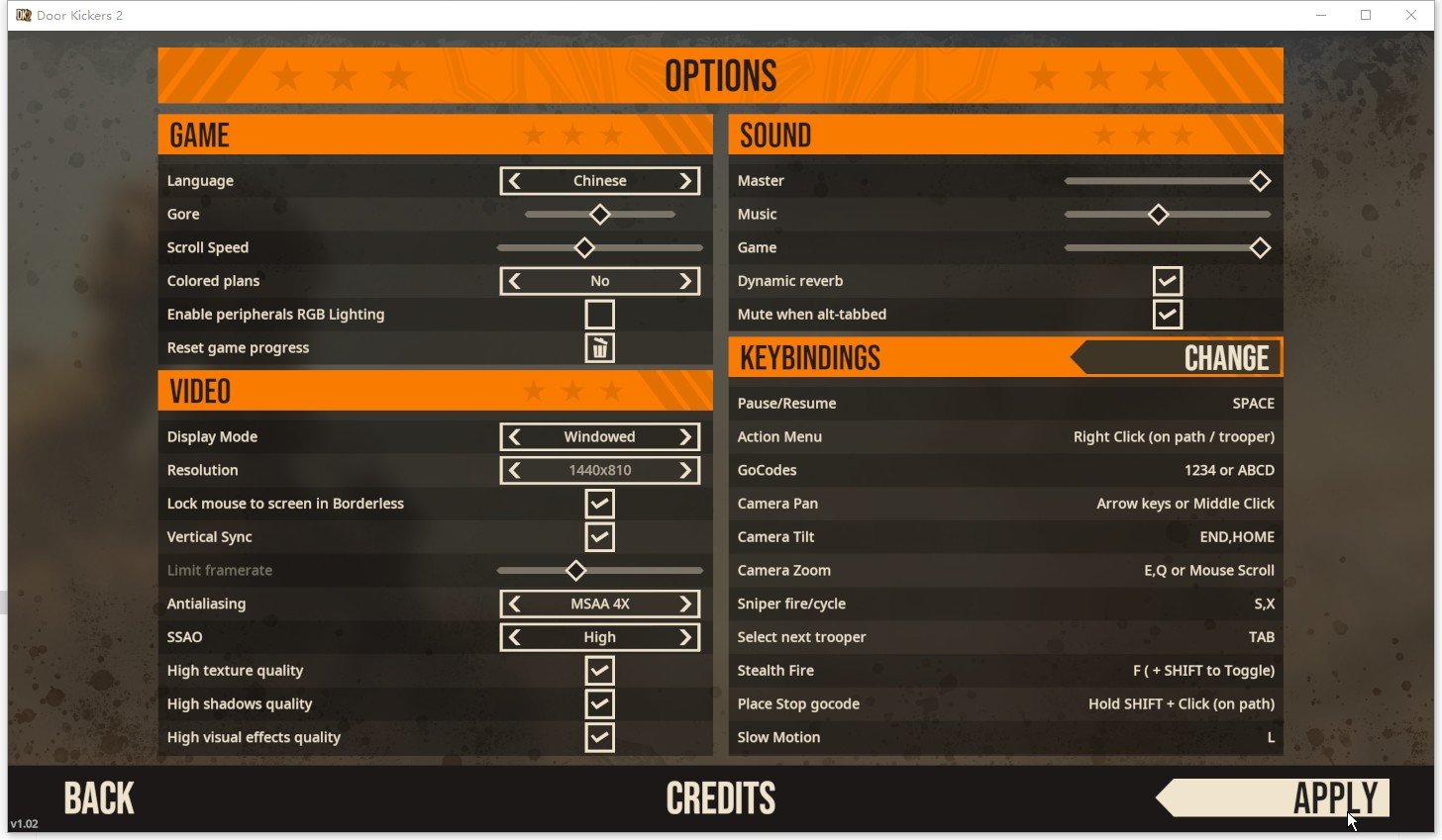 游戏主界面右下角Game options——Language——Chinese——APPLY——重启游戏生效(RESTART NOW)