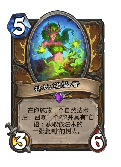 在你施放一个自然法术后,召唤一个2/2并具有“亡语:获取该法术的一张复制”的树人。
