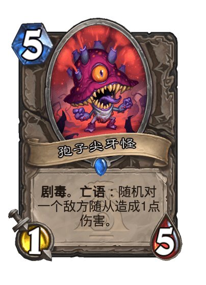 剧毒。亡语:随机对一个敌方随从造成1点伤害。