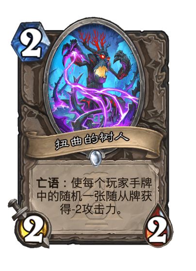 亡语:使每个玩家手牌中的随机一张随从牌获得-2攻击力。