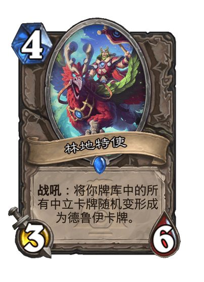 战吼:将你牌库中的所有中立卡牌随机变形成为德鲁伊卡牌。