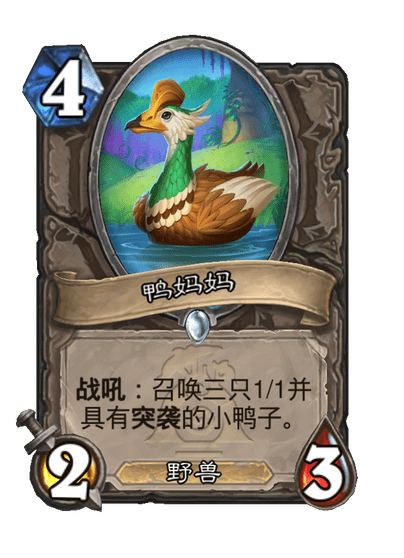 战吼:召唤三只1/1并具有突袭的小鸭子。