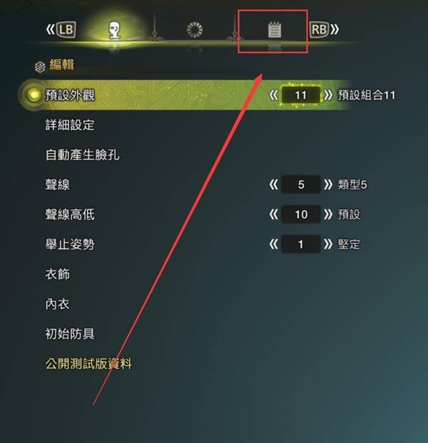 2、在捏脸界面中,找到 第三个选项卡,用于存储和导入捏脸数据。
