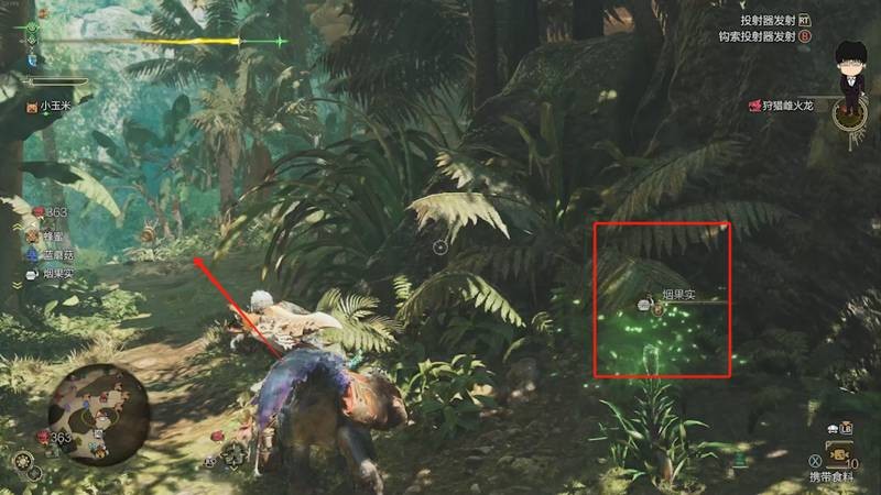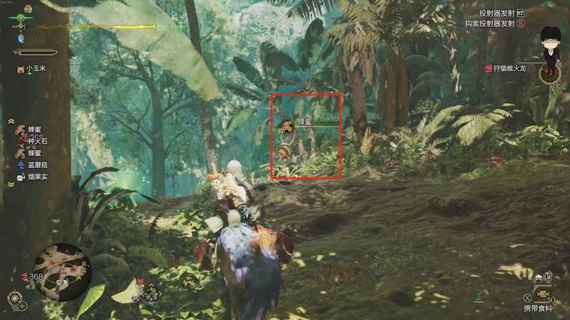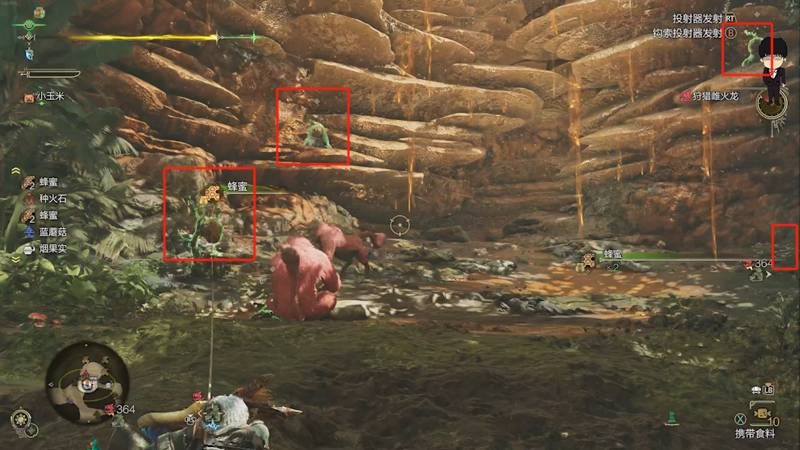 下坡后右转,在地图边缘还能找到额外1个蜂蜜点。此外,这里还有常春藤叶,可以用于合成落网陷阱,记得顺手采集!