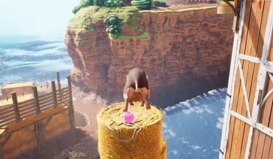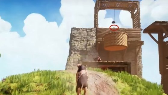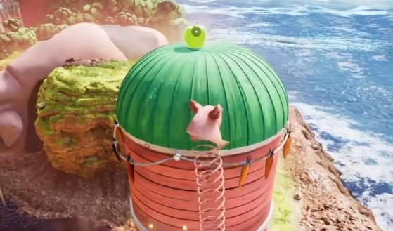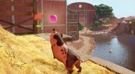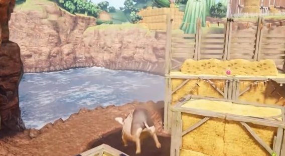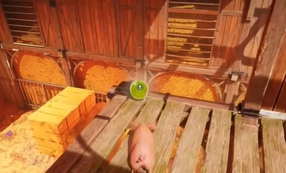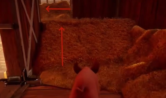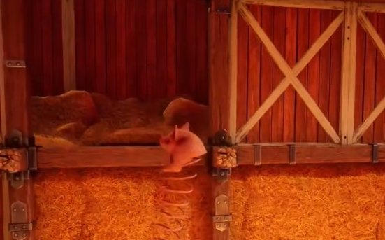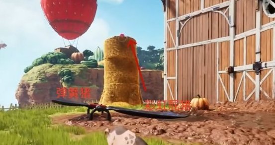 首先我们操作弹簧猪爬上面前的干草垛。