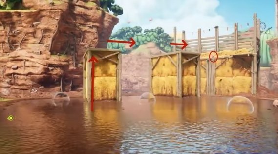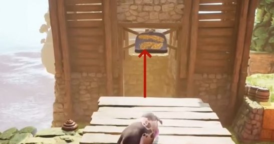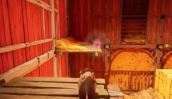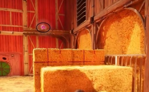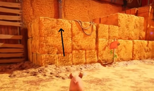 位置在旁边的干草垛平台上,需要彩虹屁猪去获取。
