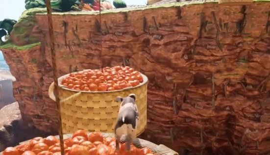 借助果筐就能跳到对面。