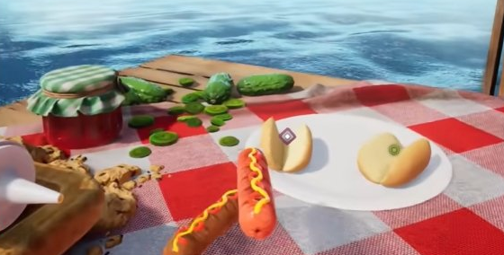 接着进入面前的面包中,就可以变成热狗。