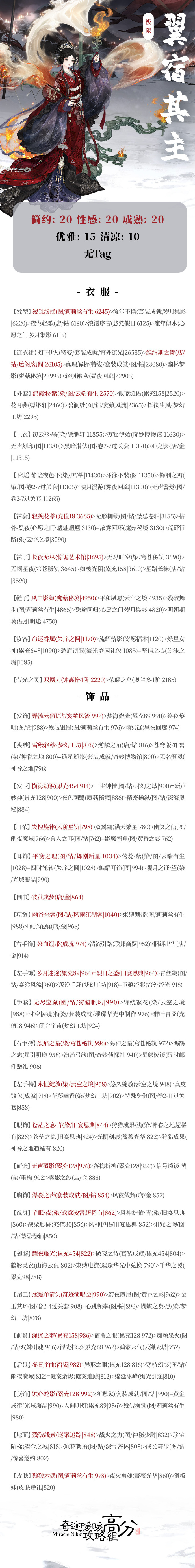 【翅膀】:耀夜临光 (累充454|822) > 破晓之诗 (套装成就/累充454|804) > 鹤影灵衣 (山海云荒|802) > 束缚电流 (璀璨华光中兑换|790) > 千华之翼 (累充98|788)